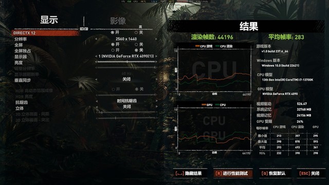游戏里见真章,直接使用《古墓丽影暗影》游戏来测试,直接画质拉满,2K分辨率下,得出的游戏帧率为264帧,那么接下来就是开启XMP的性能测试了。