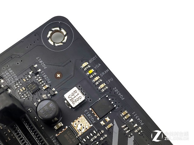 大部分主流主板在右上角都会有4个LED指示灯,按顺序分别是CPU、DRAM、VGA和BOOT,在正常进入系统的情况下会逐个点亮,在出现故障时经常点亮的灯指示问题。