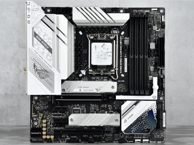 华硕 B760小吹雪是一款发布就爆火的主板,这款主板颜值出众,华硕把自家颜值当担吹雪系列下放到了M-ATX主板上,而且这款小吹雪竟然没有过多溢价,同时继承了SROG STRIX的优质用料,比13代酷睿除了几个旗舰带K的型号都能带的动。