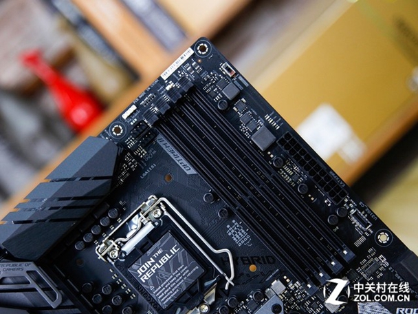 在I/O区域,接口数量丰富,并且使用了ROG一体化I/O背板设计,其独特的锁定机构,可以显着提升I/O端口和主板的接触面,防静电能力和防尘能力显著提高,同时更贴合机箱,非常方便安装。