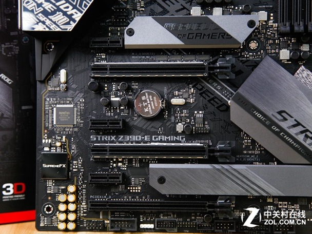 Z390-E拥有两个PCIE 3.0x4接口,支持 NVMe SSD RAID,同时这款板子搭载了支持傲腾技术,有三个PCI-E X16尺寸的插槽和2个M.2插槽,而且ROG在每个M.2接口上部都装备了大尺寸大尺寸金属散热装,不仅提高了散热能力,也提高了整体的颜值。