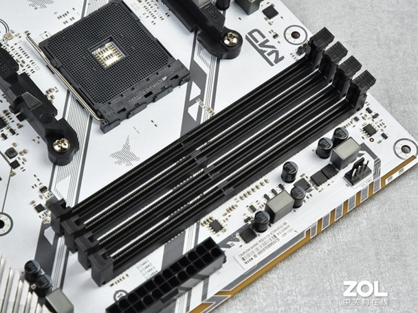 显卡插槽方面,七彩虹 B550M GAMING FROZEN V14主板拥有两根PCIe x16长插槽,靠近CPU为X16模式支持PCIe 4.0技术,下面一根为X4模式,支持PCIe 3.0,两根插槽都装备了金属保护装甲,可以防止显卡插拔意外造成损坏。