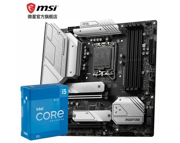 首先推荐的一套板U套装来自今年初新发布的12代非K酷睿与B660主板的组合微星 B660M MORTAR WIFI DDR4+i5-12400F。