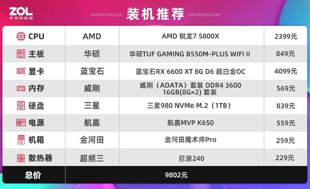 AMD 锐龙7 5800X平台(价格会有价格波动所载现实情况为依据)