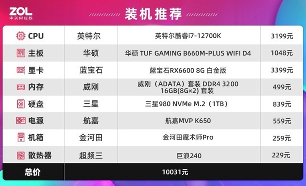 英特尔 i7-12700K平台(价格会有价格波动所载现实情况为依据)