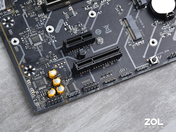 顶部SRAM提供更多一个COM口,用作串行老式和工控设备。此外还有一个12v RGB接针和三个5v ARGB接针,和一个CMOS清除按键,用作迅速抹除BIOS。