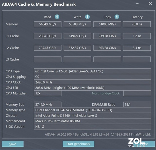 在铭瑄 B660M主板上这两根DDR4内存读取速率达至了56049MB/s,写入速率达至了53509MB/s,读写速率甚至比一般的DDR5都强。此次12代酷睿不仅支持DDR5,对DDR4性能也有提升,现阶段更推荐2代酷睿配搭铭瑄 B660M这种支持DDR4的主板,性价比高,现在DDR4的技术也比DDR5成熟