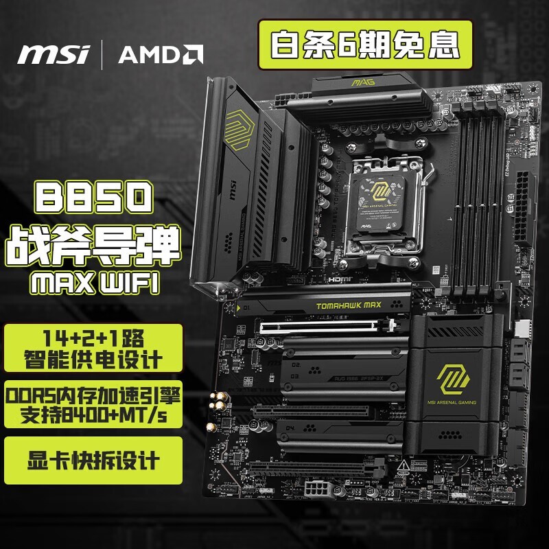 微星 B850 TOMAHAWK MAX WIFI战斧导弹主板 支持CPU 7800X3D/9700X/9800X3D(AMD B850/AM5接口)