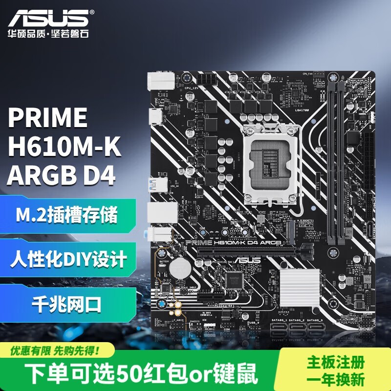 华硕 B460M-PRO ARGB D4 H510M电竞游戏主板 大师系列主板 支持 CPU G6900/12400F/12100F/13100F PRIME H610M-K ARG