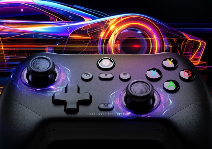 此外,雷神 G30S手柄搭载了新一代TMR磁变阻摇杆,结合碳膜摇杆和霍尔摇杆的优势,提供精准持久的操控体验。支持1KHz回报率,确保操作响应迅速流畅。同时,雷神 G30S配备与Xbox同源的非对称马达,支持四马达扳机震动,根据游戏场景提供细腻震动反馈,让玩家沉浸其中。