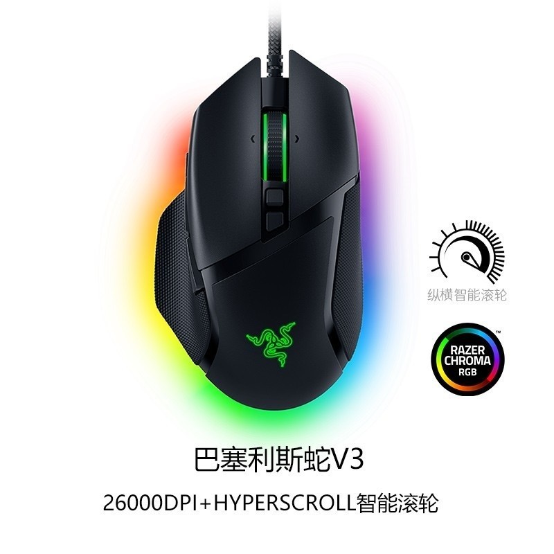 雷蛇 巴塞利斯蛇V3 有线鼠标 26000DPI RGB 黑色