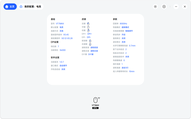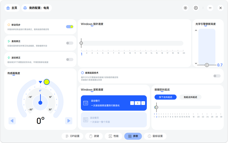 安装简单,也不会强求用户注册账号,简简单单实现应有的功能才是玩家心中的好驱动。驱动页面简洁,菜单逻辑清晰,功能划分合理。无论是调节DPI还是设置更改按键功能,亦或是更改鼠标的静默高度和去抖延时等细节功能,都可以在两三次点击内实现。