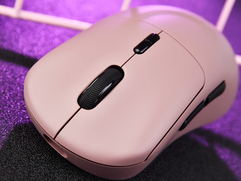 趴握时,鼠标背部给掌心充盈饱满的握持感,两侧夹住鼠标的手指各有位置安放,面积较大的左右按键中有浅浅的凹陷,食指和中指很容易就能找到最舒适的触发位置。鼠标中键有着橡胶防滑纹理,滚动质感稍有松散,是操作体验中唯一的小瑕疵。