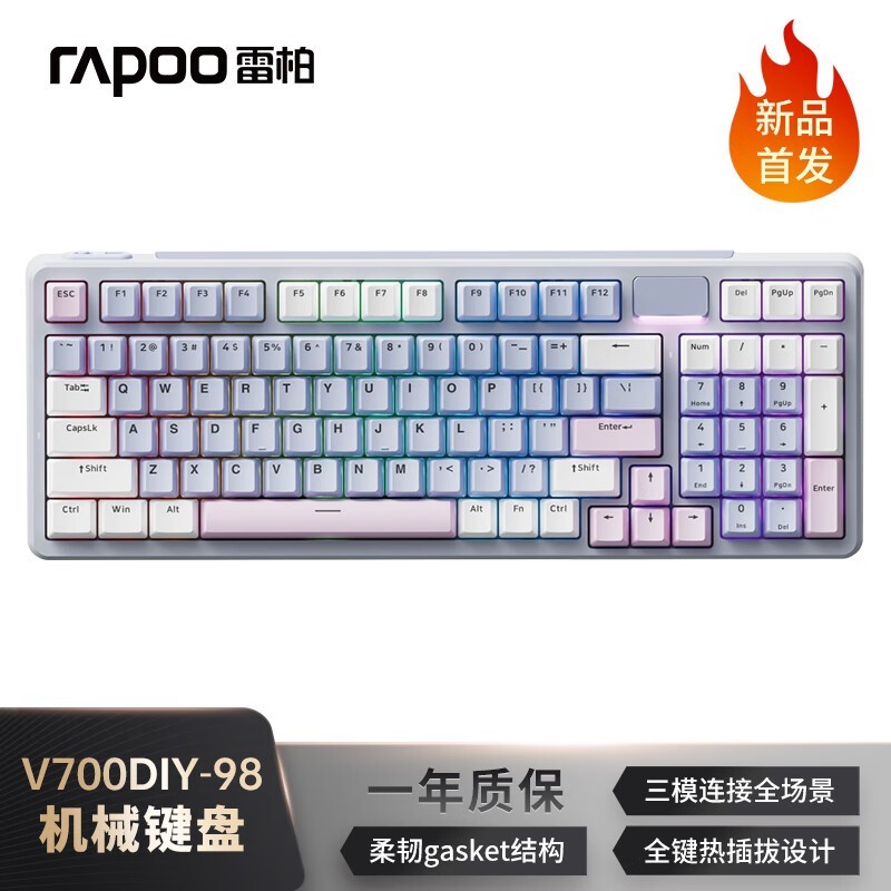 雷柏 V700 DIY-98无线机械键盘有线蓝牙三模gasket客制化7层填充消音全键热插拔电竞游戏办公键盘 蓝灰粉