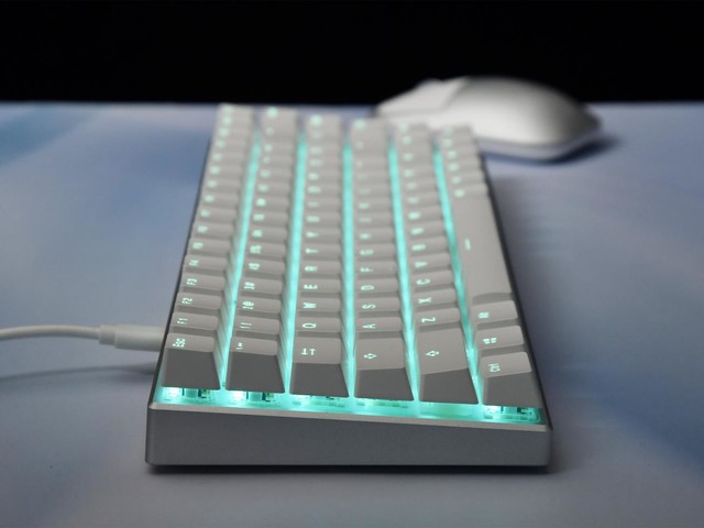 雷柏 MT510机械键盘的键帽依旧使用PBT材料,从热升华工艺变为双色注塑工艺。因此这套键帽就可以透光了,配合冰蓝色背光,能够均匀地从发光区域投射出来,视觉效果更好,也让键盘再开灯光的情况下看上去更加炫酷。在光线不足的情况下,可以帮助我们辨别键位,同时也让它具备了一些电竞元素。