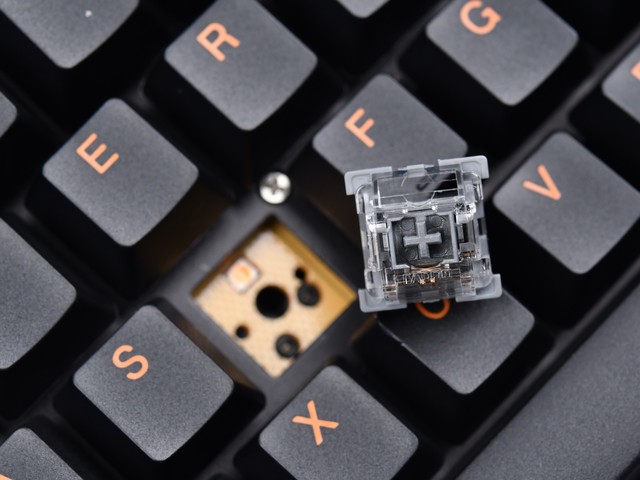 雷柏 V500使用雷柏自主线性弹白轴/线性快银轴,它们均采用线性手感方案。接下来让我们简单看一下参数:弹白轴拥有35gf触发压力、拥有3.4mm的总行程与1.2mm的触发行程;快银轴触发压力45gf、总行程4mm、触发行程1.3mm。