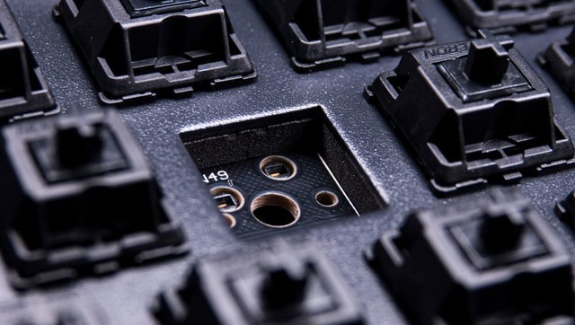 套筒热插拔顾名思义就是将套筒焊接在电路板的孔位上,这种方式的热插拔可兼容的轴体不够丰富,要根据轴体的针脚来进行选择。成本上要更低,但是换轴的丰富度不够。