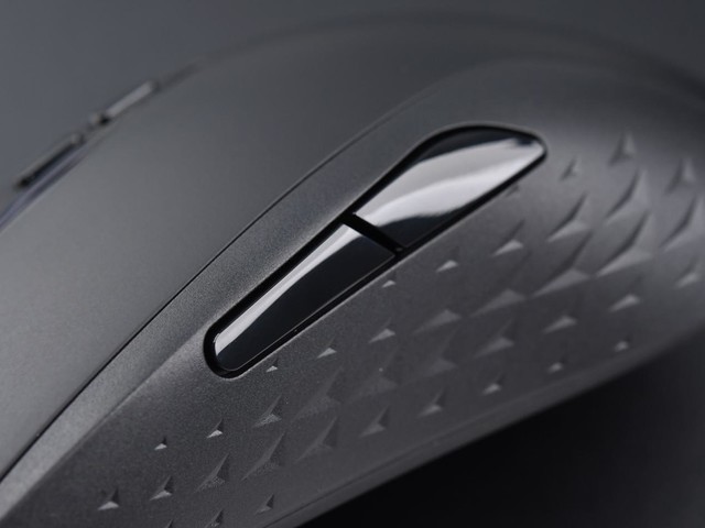 雷柏 V200W双模无线RGB游戏鼠标的左侧提供了2枚侧键,两枚按键的手感一致度相当高,触底干脆利落,按键手感反馈不错。侧键下方留有一定空间,方便我们进行抓握。它的侧裙加入了V型防滑纹路,能够增加摩擦系数,防止鼠标意外滑落手掌。