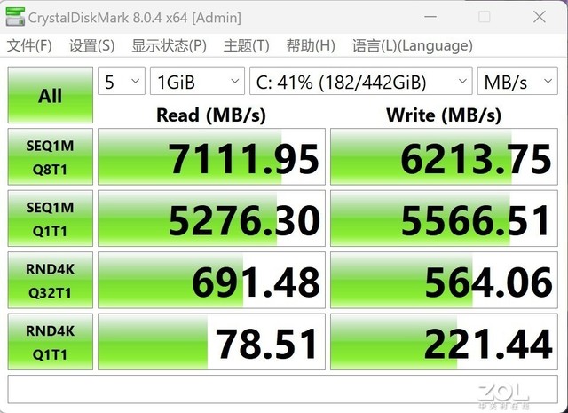 下面我们用CrystalDiskMark测试一下这款游戏机的PCIe 4.0固态。