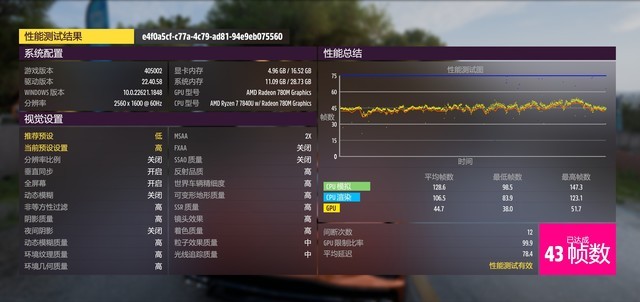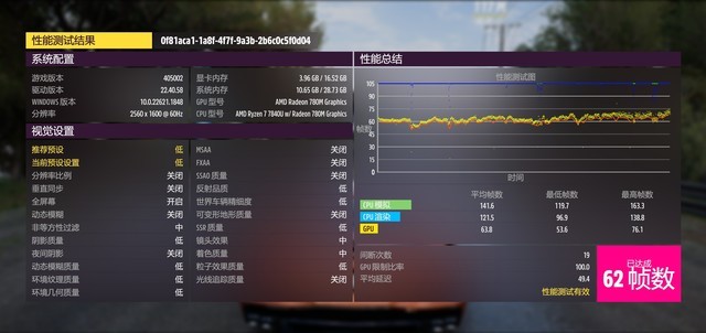 在《极速竞技:地平线5》这款3A级别的赛车游戏中,这款主机在2560x1600分辨率高画质下能够跑到43帧。而在推荐预设的低画质下则能够达到62帧的数据。