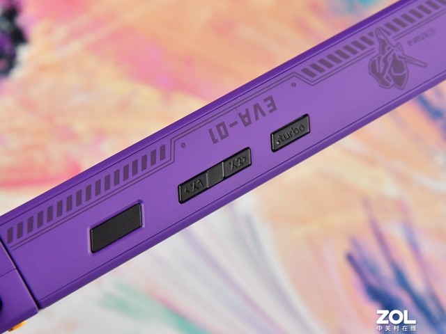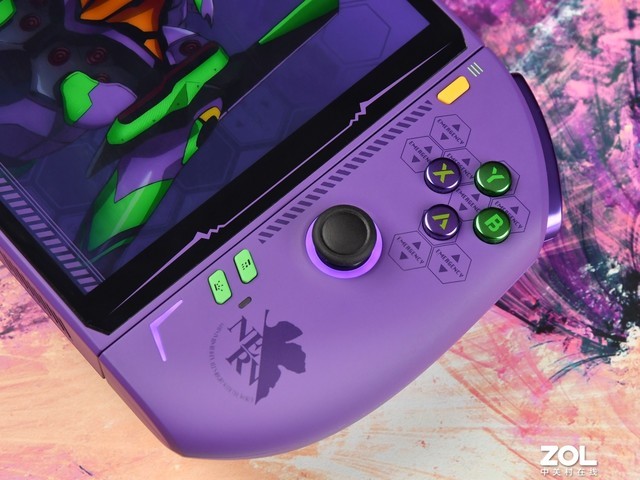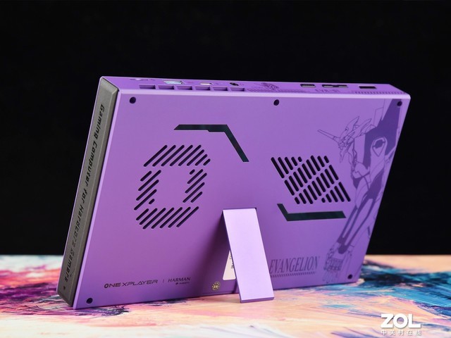 OneXPlayer 2Pro EVA联名限量版三合一电脑游戏机整体采用了EVA初号机的配色风格,机身全部采用紫色涂装并且丝印一些EVA有关的DIY元素。产品尺寸长310mm,宽127mm,高23mm,是一款偏大的游戏机,倒是挺符合初号机巨型机体的设定。