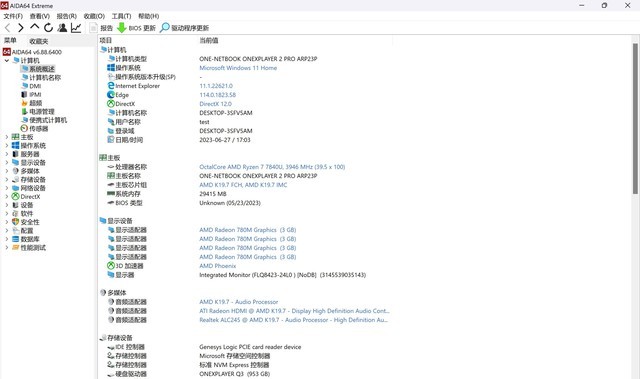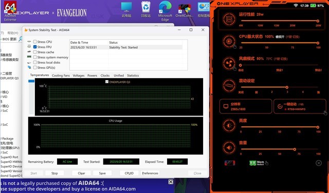 最后我们使用AID64进行拷机测试,看看这款OneXPlayer 2Pro EVA联名限量版三合一电脑游戏机的温度表现如何。