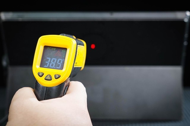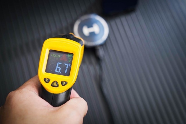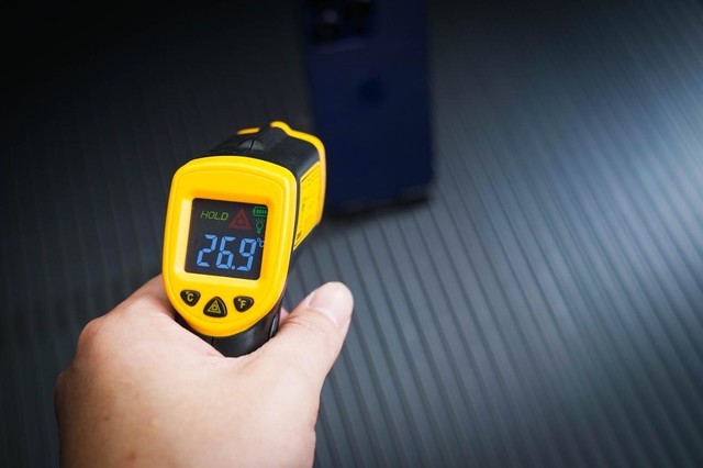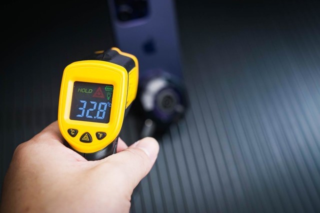 可以看到测温枪此时显示的最低温度为6.7度,表现非常优秀;但这终归是理论测试,具体应用到手机或者平板上能降温多少还要看手机材质、接触面大小以及主板设计,为了让大家更直观的看到差距,笔者将同一款手机分别运行一款游戏一小时,测试带散热器和不带散热器结束时的手机温度。
