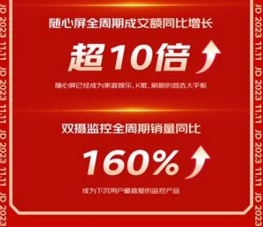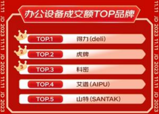 办公场景的多元化带动了办公产品购买需求,11.11期间,京东在供应链里持续“挤水分”,把省下来的钱让利给用户和合作伙伴,带来了能够真正促进消费、激发消费市场活力的“真低价”,满足了消费者丰富的办公产品需求。京东11.11全周期,随心屏成交额同比增长超10倍;双摄监控全周期销量同比增长超160%。而在办公品类中,得力、虎牌名列办公设备成交额TOP品牌榜前两名,安防会议成交额TOP品牌前三名则为海康威视、maxhub、联想。