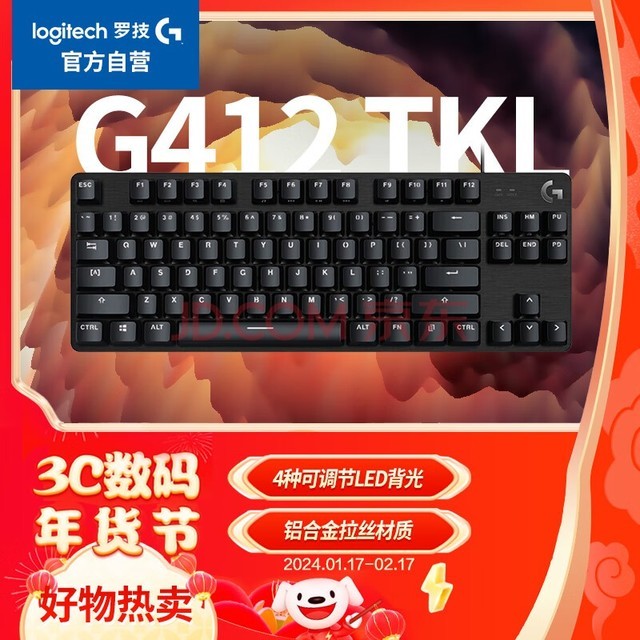 罗技(G) G412TKL机械键盘游戏有线全尺寸T机械轴 LED灯光 电脑电竞吃鸡 G412