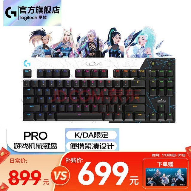 罗技(G)PRO X游戏机械键盘GPX电竞RGB背光电脑吃鸡紧凑式87键有线键盘 PRO 机械键盘 KDA限定版 T轴