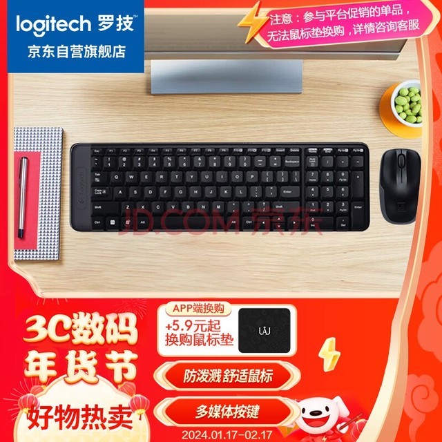 罗技(Logitech)MK220 键鼠套装 无线键鼠套装 办公键鼠套装 多媒体键鼠套装 带无线2.4G接收器 黑色