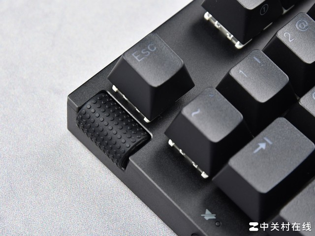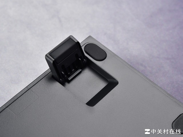 键盘底部提供两个由硅胶制成的脚支撑和五个防滑脚垫,可以稳定地将键盘固定在桌面上。