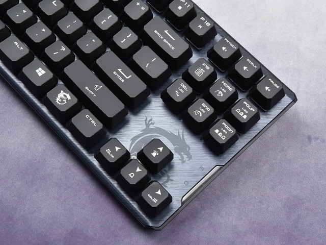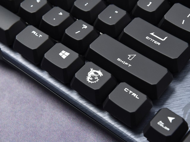 此外,这款键盘在细节设计上也有一种信仰感。例如,方向键周围的微星红龙印刷和右侧Ctrl键附近的微星龙标志定制键帽可以说是在有限的空间内充满了信仰。