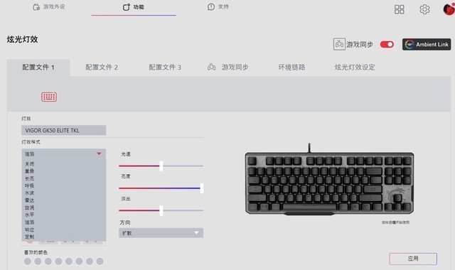 另外,用户还可以通过MSI Center为这个键盘配置了宏配置,帮助玩家更好地玩游戏。而且一些主流游戏也支持Ambient Link游戏同步功能,键盘灯效果可与游戏状态同步,为玩家带来更多身临其境的体验。