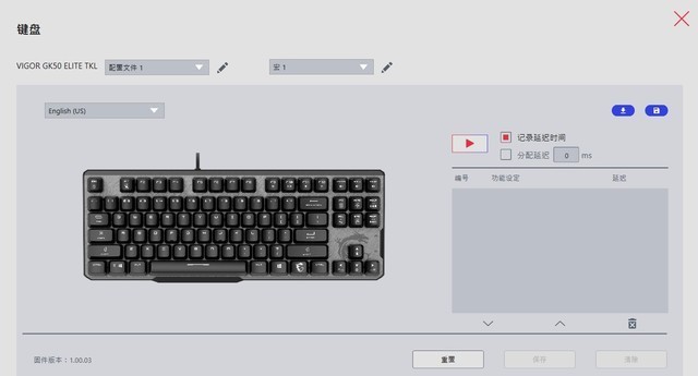 微星VIGOR GK50 ELITETKL是一个非常方便的红轴键盘。较低的按钮压力克数对手指的压力非常小,长时间输入不会感到疲劳。此外,红轴键触发速度快,输入效率极佳。