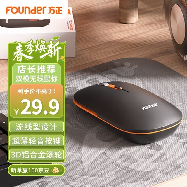 方正 N520无线双模鼠标是一种具有人体工程学设计和双模无线技术的高性能光学鼠标。方正 N520支持2.4G和蓝牙两种连接方式,使您可以在不同的设备之间快速切换,使用起来更加方便。此外,方正 N520的外观设计精致简洁,符合人体工程学原理,能有效减少手部疲劳,提高工作效率。目前,这款鼠标正在推广中,原价39.90元,现在只需19.70元,性价比很高。如果你正在寻找一个性能优异、价格适中的无线鼠标,考虑一下这个产品。