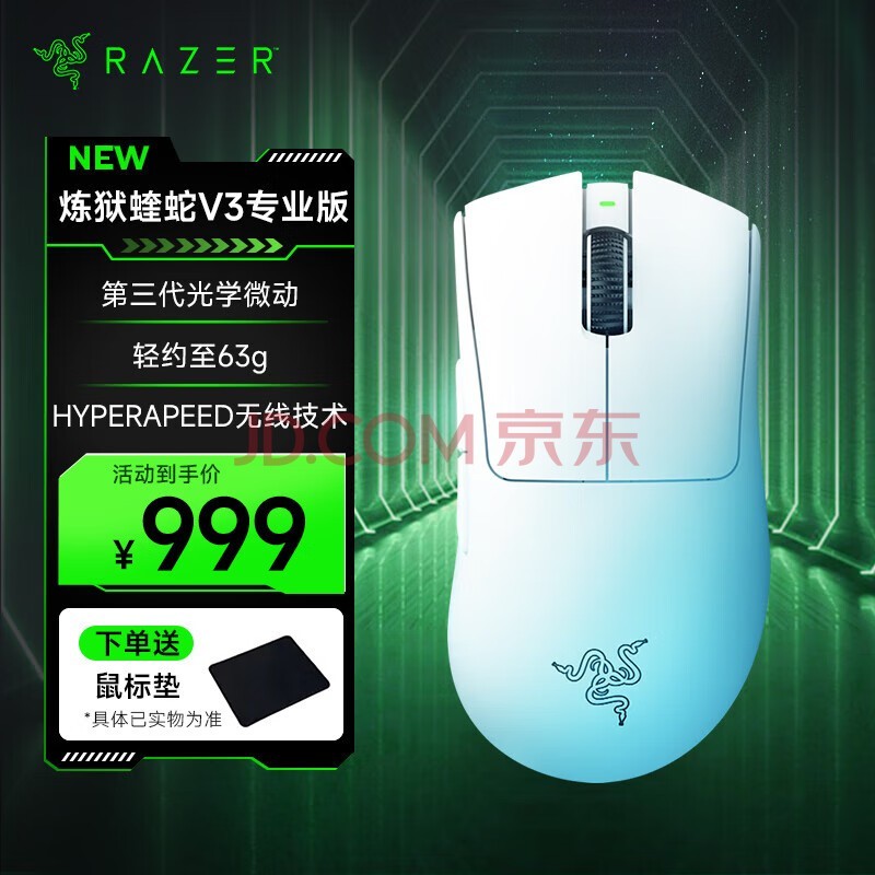 雷蛇 炼狱蝰蛇 V3pro专业版无线2.4G鼠标 电竞游戏 轻量化 人体工学 炼狱蝰蛇 V3专业版-白色