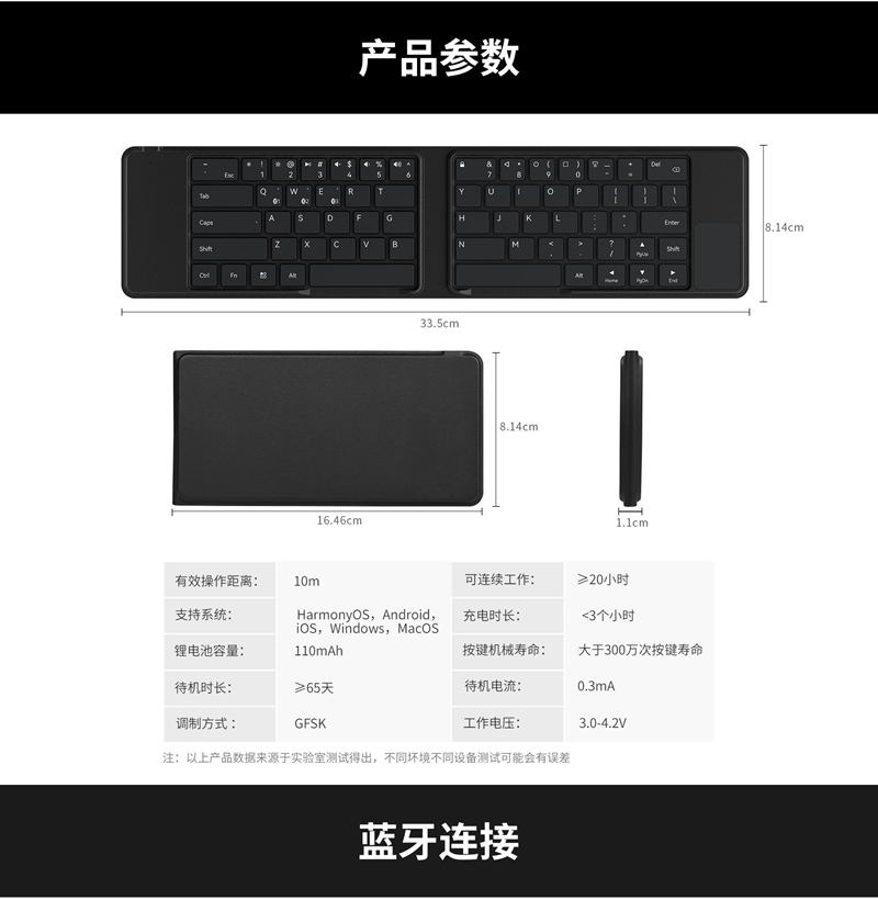 值得一提的是,BOW折叠智能触控蓝牙键盘支持三通道连接,可以同时连接并切换三台设备,实现跨屏输入,满足用户在不同场景下的使用需求。续航方面,该键盘拥有超过20小时的连续工作时间,确保用户能够全天候使用。同时,它还广泛兼容HarmonOS、安卓、iOS、Windows、MacOS等主流操作系统,为用户提供更多选择。但请注意,在iOS系统下,触控板功能将不可用。