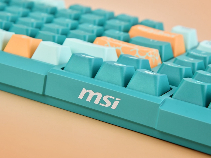键盘采用了MSI定制的青柠轴,这种轴体不仅拥有长达5000万次的寿命,还提供了出色的手感。青柠轴采用POM材质轴芯,轴体顺滑,35±10gf段落轴体,触发力度适中,回弹清脆,无论是打字还是游戏都能带来极佳的体验。同时,GASKET结构的应用进一步提升了键盘的手感,使得按键的敲击声更加柔和,减少了敲击时的震动感。