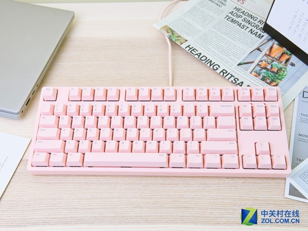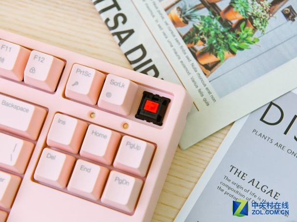 这款键盘选择了87键无小键盘的设计,不影响大部分功能的情况下可以节约桌面空间。小巧的键盘也和女性玩家气质更搭。