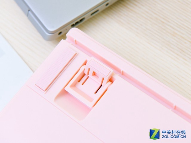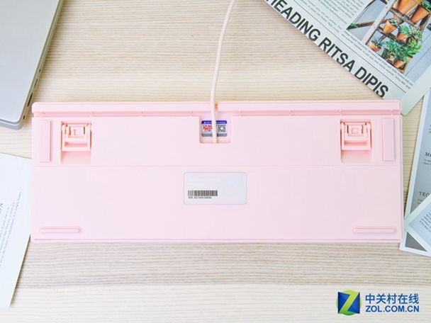 值得一提的是,不同于许多厂家的彩色键盘只是更换了键帽和键盘主体的颜色,忽视许多细节。IKBC C200键盘做到了真正的色彩统一。无论是键帽、框架、钢板还是脚垫、连接线甚至标签都做成了粉色。
