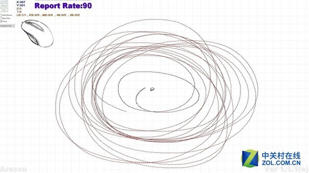 理论上来讲,回报率越高这些坐标点越密集,得益于3360传感器超高的素质,我们可以看到卓威S系列鼠标的坐标点相当密集,实力强悍。