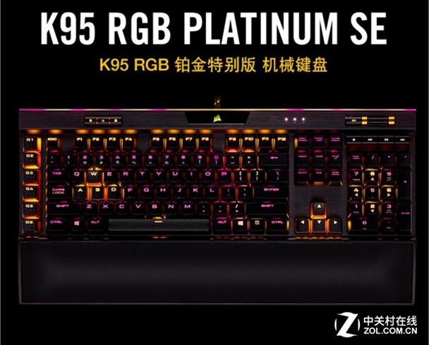 海盗船 K95 RGB铂金版机械键盘 6个独立编程宏按键,8MB板载内存,LightEdge灯光系统,可拆卸式手托