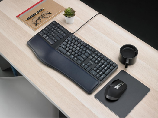 雷柏 NK8800灵活运用元素,让职场人不再拘泥于某种刻板印象。3°背脚架灵活调整工作角度,5个不同角度的防滑脚垫带来稳定的体验,Win系统13个多媒体快捷键充分满足生活、办公和娱乐场景的需求。