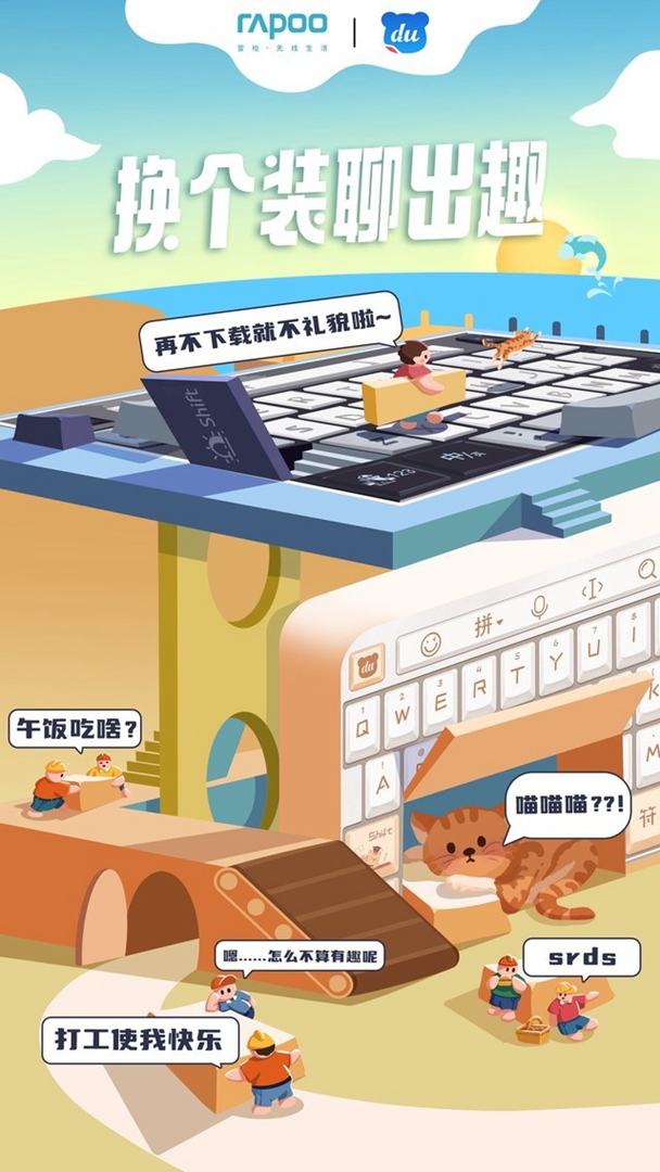美学有优先解释生活的权利,每个人都能从语言的输入和表达中感受到一些东西。因此,雷柏再次与百度输入法皮肤合作,添加新皮肤——定制键盘皮肤,以情感感知为主题,以【喵萌假期】的休闲为主题,捕捉精神空白。【航海日记】的勇气,通过海风感受舒适。温柔、活力、有态度的个人宣言。【E9350G流行紫】的灵动,隐藏不住的灿烂,在风中绽放。人物演奏乐章,色彩编织故事,融合了生活中的经典元素和创造性灵感,简单的生活与轻触摸慢慢走出节奏,变得生动。欢迎进入丰富多彩的视野,请接受来自四个新皮肤的邀请。百度输入法移动终端应用程序全面在线!