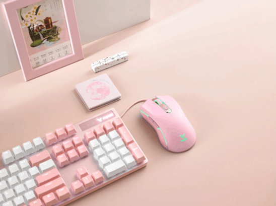 在异彩纷呈的世界另一面,雷柏“暮雪初樱”主题游戏外设桌搭全家桶是对粉色色彩的精准把握和对美的精准识别。ALLPINK游戏桌搭、奶甜少女游戏桌搭,少时心动,回到游戏最纯粹的时候。
