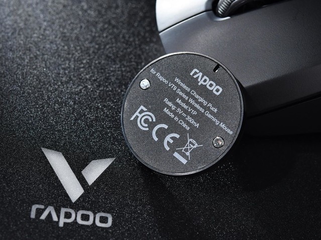 现在,雷柏 VT9专用V1P无线充电模块。它是磁性的,只是安装在鼠标后面的盖子上。这个无线充电模块支持Qi无线充电协议,市面上常见的无线充电板都可以补充。这个充电模块的工作电压为5V,最大功率约为1.75W。给鼠标充电大约需要3个小时。不用的时候可以把鼠标放在充电板上充电,比较方便。