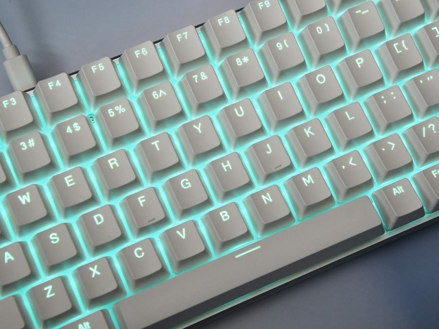 这个键盘的键盘功能指示灯没有单独设置。我们可以通过相应按钮的背光状态直接判断键盘的工作状态,这也是这种紧凑型键盘上常见的设计方案,有利于压缩产品的尺寸。