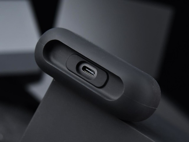 HyperX 天际真无线游戏耳机的充电盒很圆,出厂时有硅胶保护套。耳机盒前面有一个功能指示灯,后面有一个多功能按钮。耳机盒配有USB-C端口。我们可以用自己的USB-C线给耳机充电。充满一次电后,可以持续33小时,基本可以满足一周的日常佩戴需求。USB-C端口的加入不需要区分正反。它可以使用与大多数新手机或播放器相同的充电器,不需要单独匹配电线,更方便我们充电。