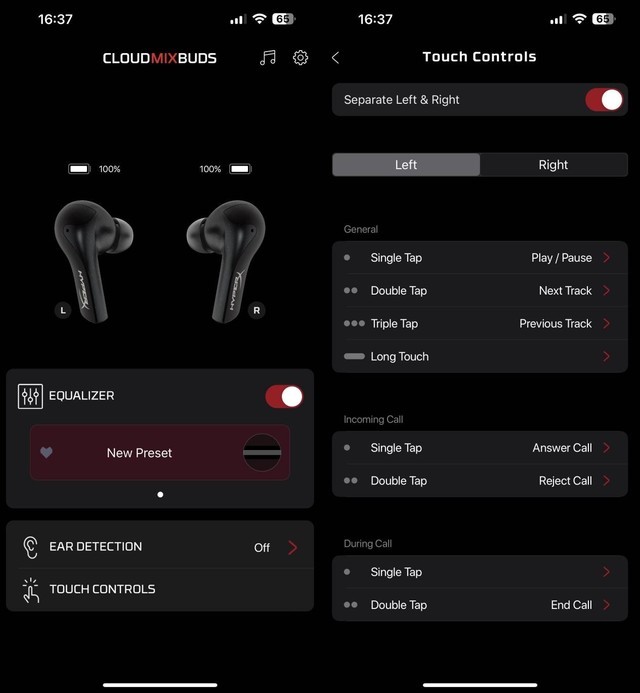 HyperX 天际真无线游戏耳机还支持通过手机版HyperXNGENUITY软件调整平衡器,定制耳机功能设置,从而进一步提高其可玩性。